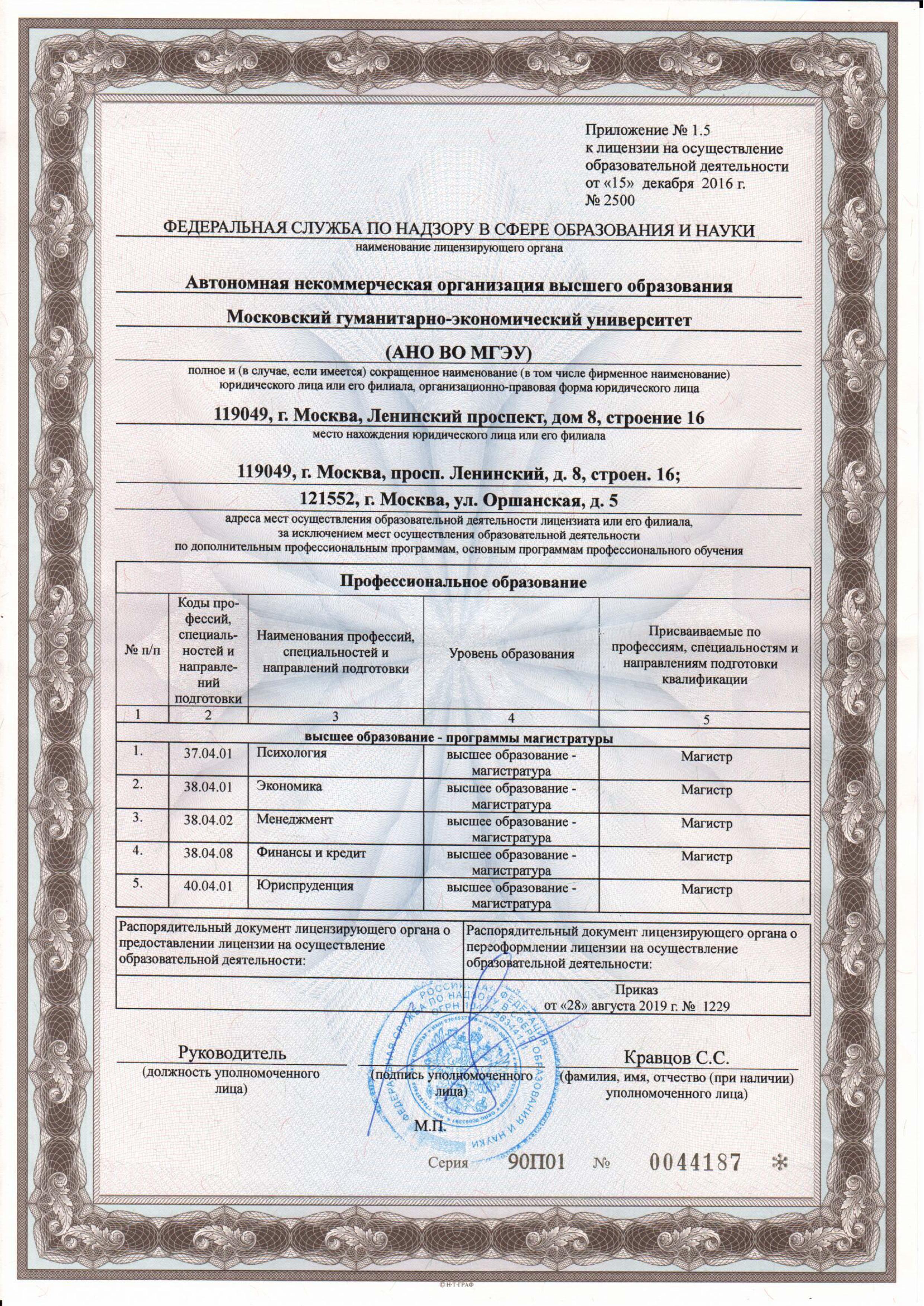 АНО ВО МГЭУ получил лицензию на реализацию образовательных программ магистратуры