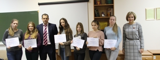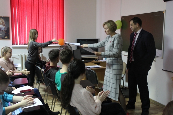 5 декабря в филиале состоялось награждение наиболее активных участников волонтёрского отряда: студентов 3 курса Ермакову Дарью, Красавину Полину, Савченко Полину, Золоторёву Анастасию, Дукина Дмитрия, студентов 2 курса Верхушину Антонину, Челашвили Дарью, Горбачеву Кристину, студентов 1 курса: Черниогло Дарью, Николаеву Оксану, Иванову Татьяну, Маркину Марию. Волонтёры делились опытом своей деятельности, а так же накануне праздника сделали стенгазету, в которой отразили в фотографиях работу с детьми.